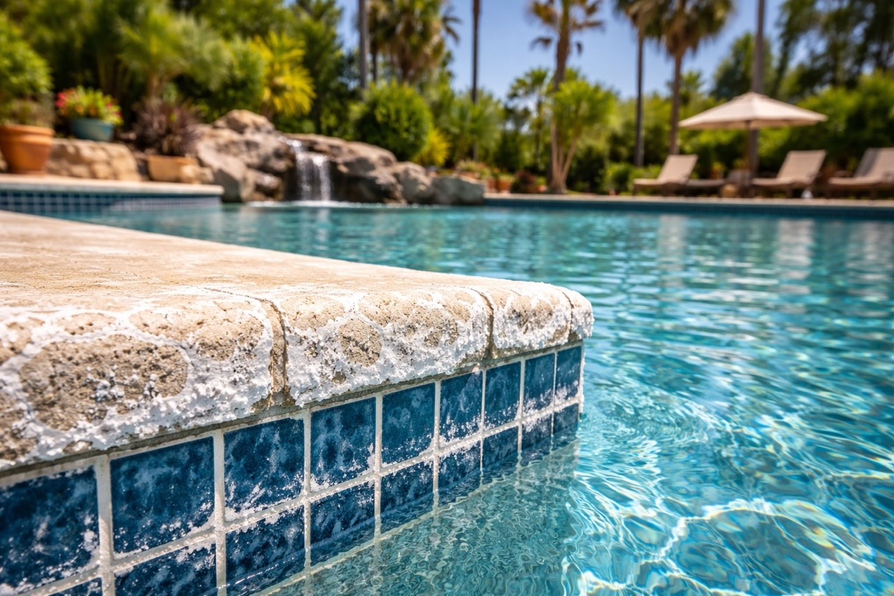 That white scale on your pool tile isn’t dirt or algae. It’s calcium buildup, and it’s one of the most common issues pool owners face.